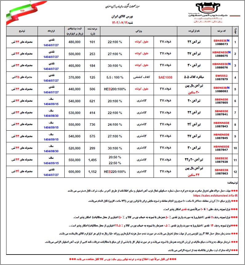 Home - اخبار - اطلاعیه عرضه بورس کالا ذوب آهن اصفهان اطلاعیه عرضه بورس کالا ذوب آهن اصفهان پاک فلز 11 October, 2025 0 Comment بورس کالا اطلاعیه عرضه بورس کالا ذوب آهن اصفهان