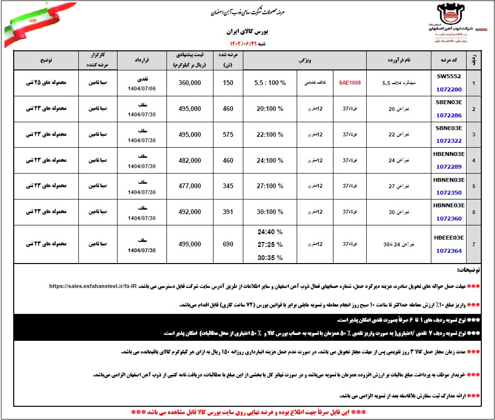 Home - اخبار - اطلاعیه عرضه بورس کالا ذوب آهن اصفهان اطلاعیه عرضه بورس کالا ذوب آهن اصفهان پاک فلز 20 September, 2025 0 Comment بورس کالا اطلاعیه عرضه بورس کالا ذوب آهن اصفهان