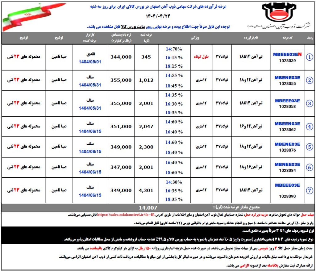 Home - اخبار - اطلاعیه عرضه بورس کالا محصولات ذوب آهن اصفهان اطلاعیه عرضه بورس کالا محصولات ذوب آهن اصفهان پاک فلز 15 July, 2025 0 Comment بورس کالا اطلاعیه عرضه بورس کالا محصولات ذوب آهن اصفهان