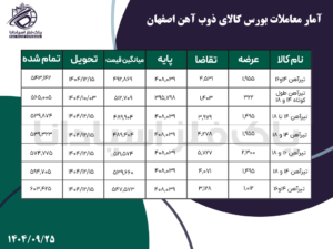 خانه - اخبار - آمار معاملات بورس کالا ذوب آهن اصفهان آمار معاملات بورس کالا ذوب آهن اصفهان پاک فلز 25 آذر, 1404 0 دیدگاه بورس کالا