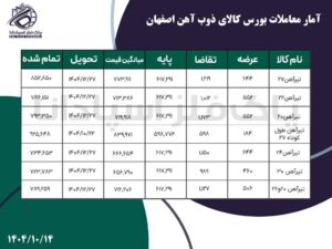 خانه - اخبار - آمار معاملات بورس کالا ذوب آهن اصفهان آمار معاملات بورس کالا ذوب آهن اصفهان پاک فلز 14 دی, 1404 0 دیدگاه بورس کالا
