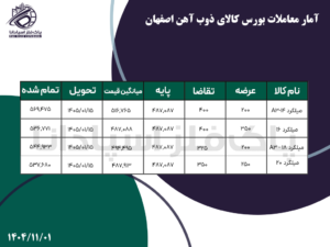 خانه - اخبار - آمار معاملات بورس کالا ذوب آهن اصفهان آمار معاملات بورس کالا ذوب آهن اصفهان پاک فلز 1 بهمن, 1404 0 دیدگاه بورس کالا
