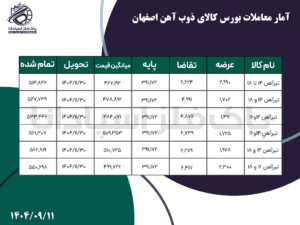خانه - اخبار - آمار معاملات بورس کالا ذوب آهن اصفهان آمار معاملات بورس کالا ذوب آهن اصفهان پاک فلز 11 آذر, 1404 0 دیدگاه بورس کالا