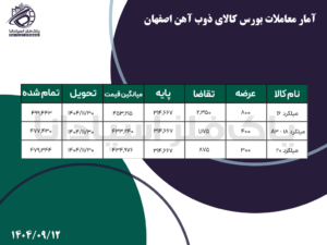 خانه - اخبار - آمار معاملات بورس کالا ذوب آهن اصفهان آمار معاملات بورس کالا ذوب آهن اصفهان پاک فلز 12 آذر, 1404 0 دیدگاه بورس کالا
